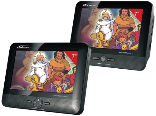 Lecteur DVD portable VIC67 TAKARA - 1 combiné DVD-moniteur 7" extraplat + 1 écran moniteur 7" - Lecteur DVD compatible MPEG4 / JPEG / MP3 / CDR / CDRW / CD Audio - Port USB - Lecteur carte mémoire - PAL NTSC Zone 2 - Réglages volume, contraste et luminosité - Télécommande multifonctions. Poids: 1.7 (kgs)