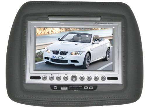 Ecran 7'' Appuie-tête en cuir gris avec lecteur DVD/MP4/USB/SD et émetteur IR&FM intégrés.